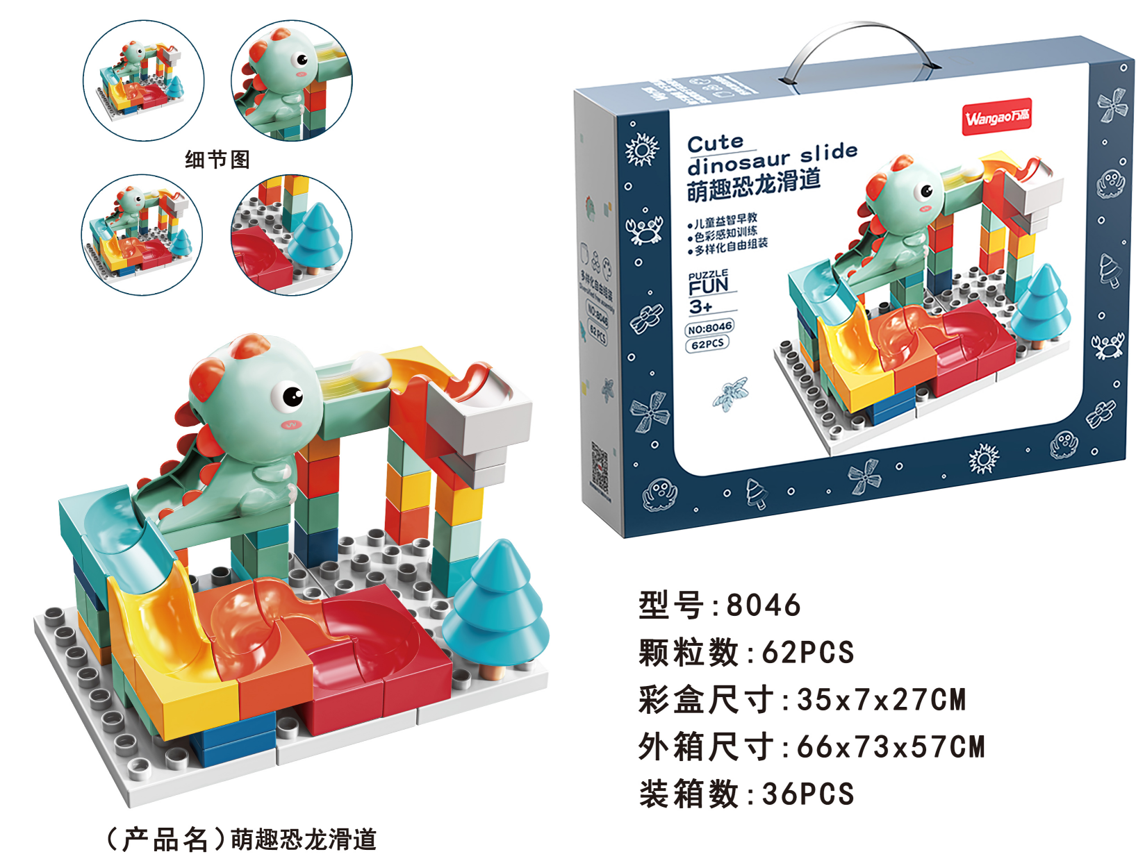 品 名:萌趣恐龍滑道62顆粒(帶底板)